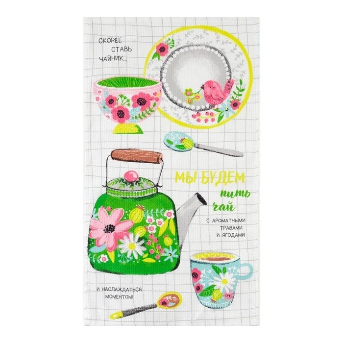 Набор кухонных полотенец Доляна «Чаепитие», 35х60см-2 шт, 100% хл, вафля 160 г/м2