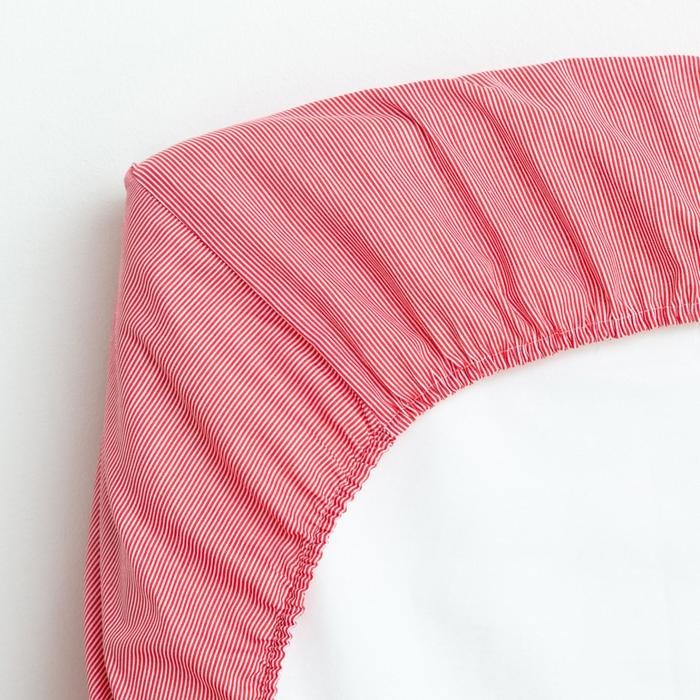 Простыня на резинке Крошка Я «Полоски» цв.белый/красный, 60*120+20см,бязь 125 гр/м2,100% х