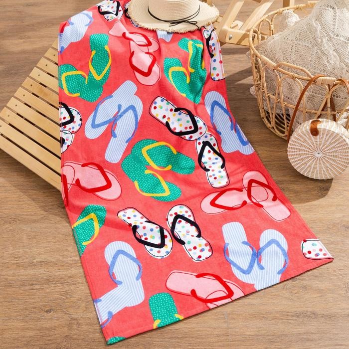 Полотенце «Розовые сандали» 70*140 см, велюр/махра 350гр/м2, 100% хлопок