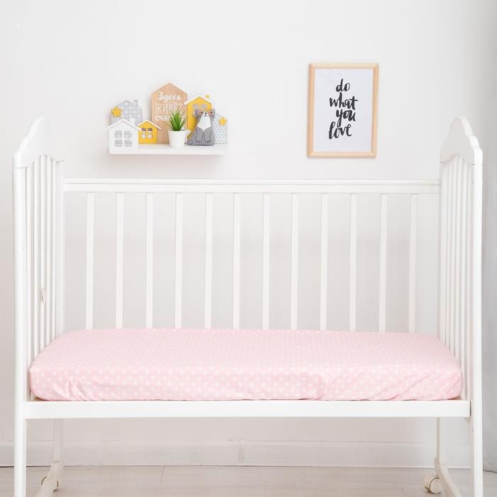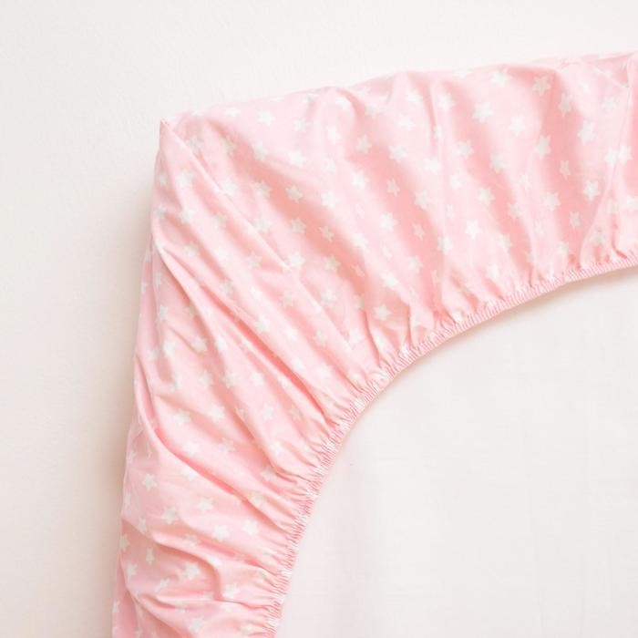Простыня на резинке «LoveLife» Розовые звездочки 60*120+20 см, 100% хлопок, сатин
