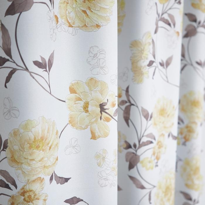 Штора портьерная блэкаут Японский пион 135×260 см, жёлтый, пэ 100%