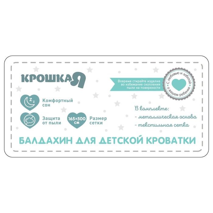 Балдахин не просто украсит спальное место малыша, он подарит чувство уюта и защищённости, материнской любви и заботы, и преобразит окружающую действительность, делая её мягкой и нежной, сквозь легкую вуаль. Балдахин выполнен из высококачественных тканей. Он не только избавит ребенка от назойливых насекомых, яркого света, пыли и сквозняков, но и ограничит огромное в глазах малыша окружающееся пространство и сделает его сон более спокойным.