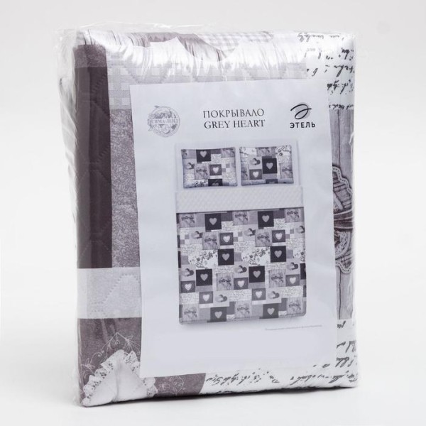 Комплект «Этель» Grey heart, покрывало 230×210 ±5 см и наволочки 50×70 — 2 шт, микрофибра