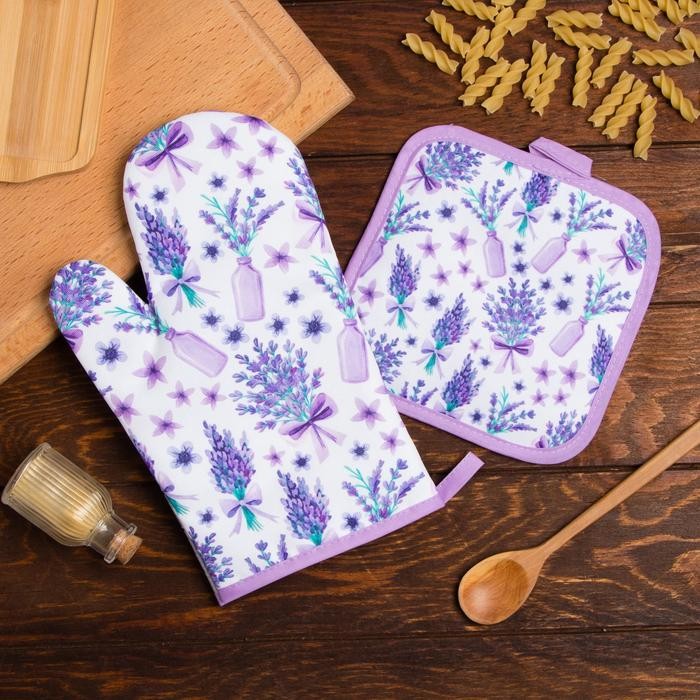 Кухонный набор Доляна «Романтика», прихватка 17*17 см, рукавица 26*16 см,100% п/э