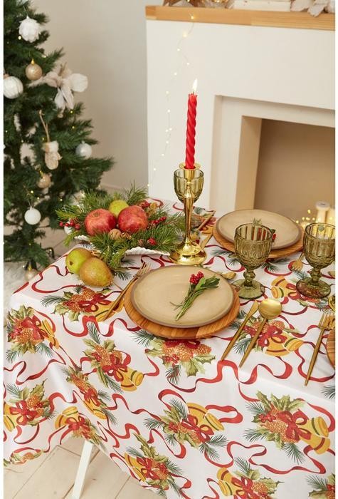 Скатерть Доляна «Новый год: Новогодние колокольчики» 145*300 +/- 2 см, 100% п/э