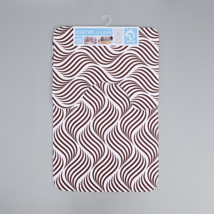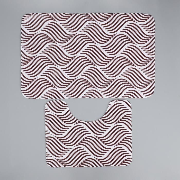 Набор ковриков для ванны и туалета Доляна «Волна», 2 шт: 50×80, 40×50 см, цвет коричневый