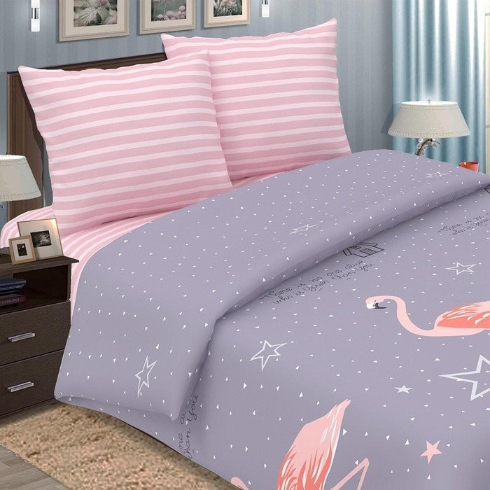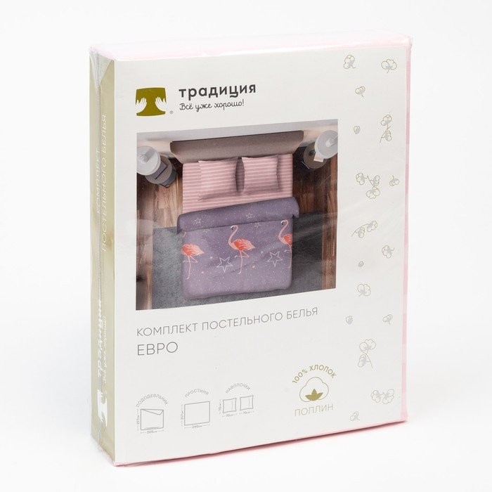 Постельное бельё «Традиция: Фламинго», евро, 200×217, 220×240, 70×70 — 2 шт.
