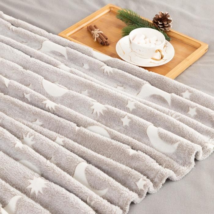 Плед светящийся в темноте Этель «Луна» 150*200 см,100% п/э, корал-флис, 220 гр/м2