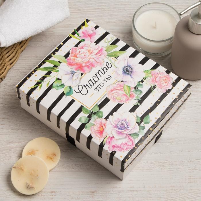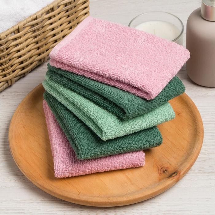 Набор махровых салфеток «Счастье это ты» 30×30 см -5шт, 100% хл, 340гр/м2