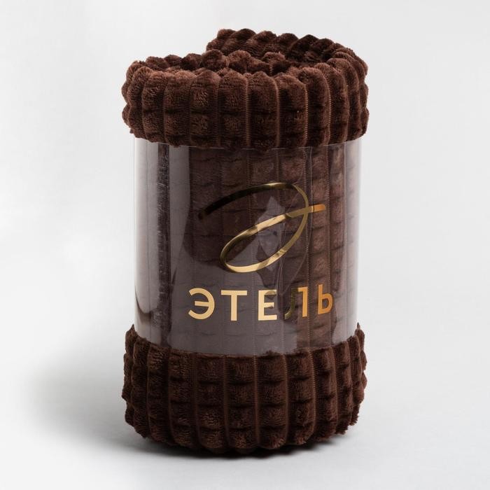 Плед Этель «Клетка» 200*220 см, цв.коричневый, корал-флис, 240гр/м2, 100% полиэстер