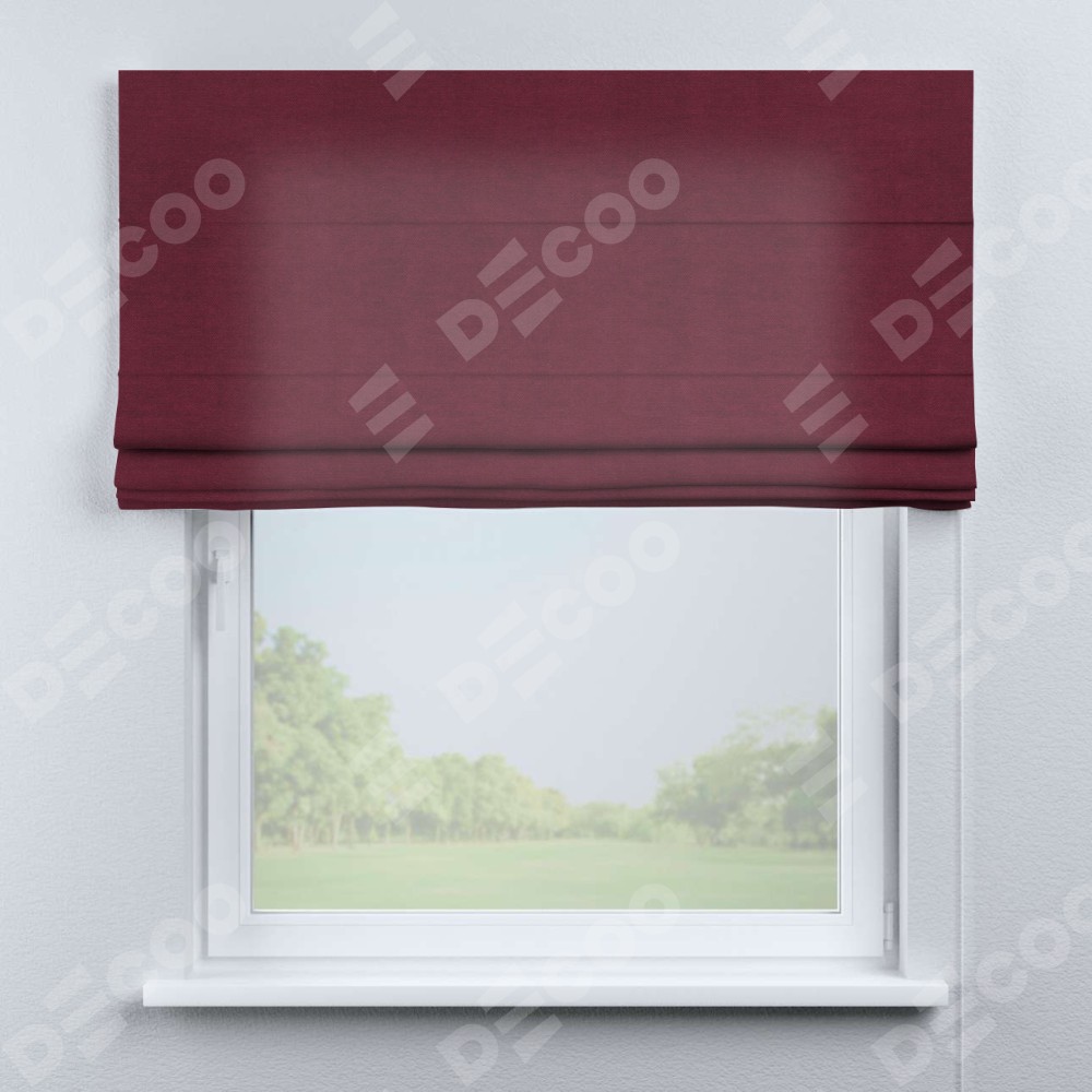 Римская штора производителя «Cortin», используется для проёма, пошита из ткани вельвет бордовый, артикул ткани 85553. Имеет универсальный механизм и подходит для монтажа: на потолок, на стену и в нишу.