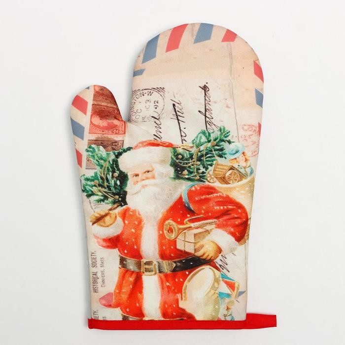 Кухонный новогодний набор Доляна"Новый Год», фартук 70×80 см, прихватка17х17см, варежка-прихватка 26х16см