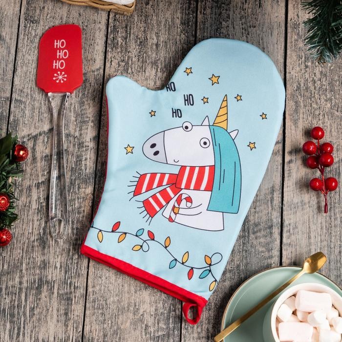 Новогодний набор подарочный «Ho, Ho, Ho» варежка-прихватка, лопатка силикон
