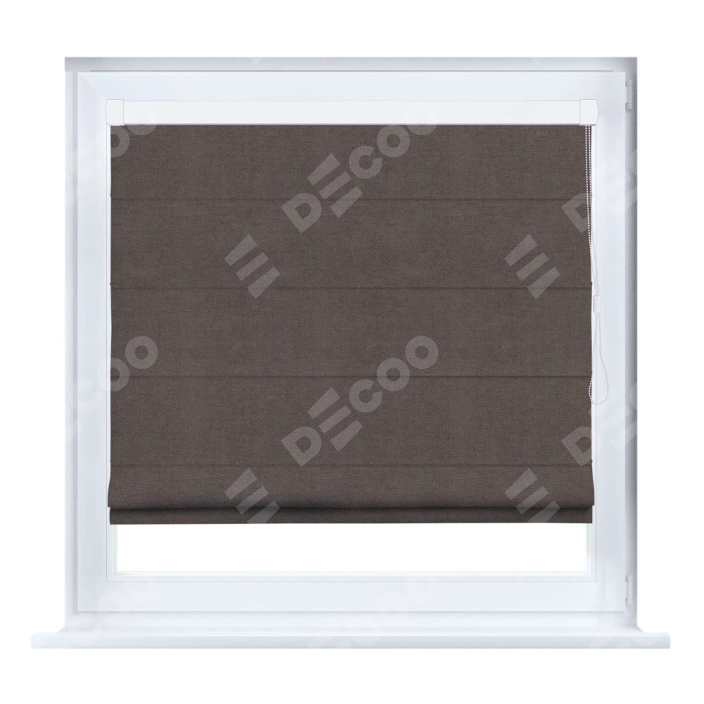 Римская штора кассетного типа, производителя «Cortin», устанавливается только на пластиковые окна и прилегает к стеклопакету, пошита из ткани вельвет коричневый, артикул 14135.