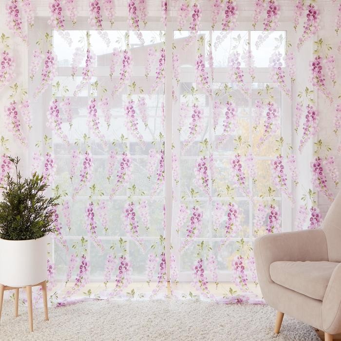Тюль «Этель"Виноградная лоза (лиловый) б/ утяжелителя, ширина 280 см, высота 270 см