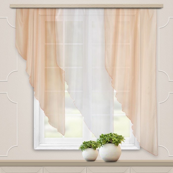 Комплект штор для кухни Мальва 280×150 см, персик, полиэстер 100%