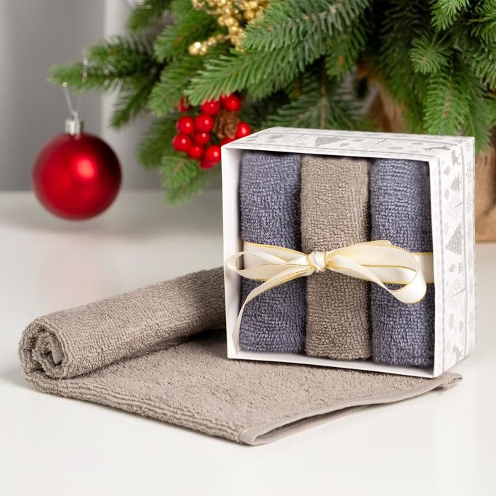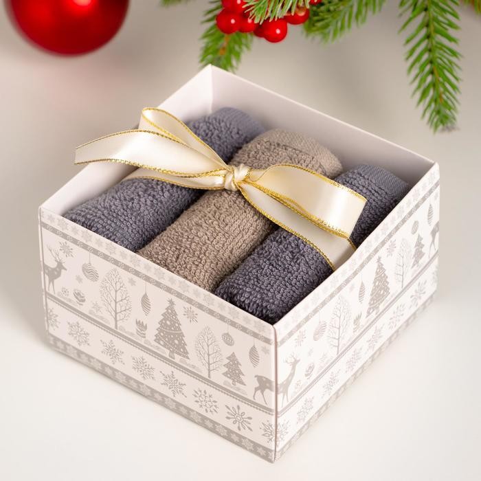 Набор махровых полотенец Этель «Снежинки» 30×30 см — 3 шт, хлопок 340гр/м2