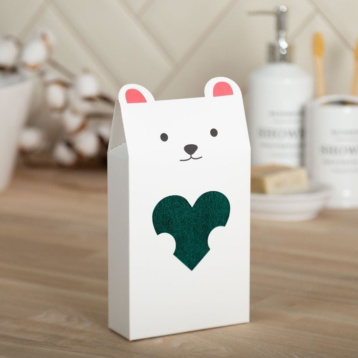 Полотенце подарочное Экономь и Я «Мишка» 30*60 см, цв.изумрудный, 100% хл, 320 г/м2