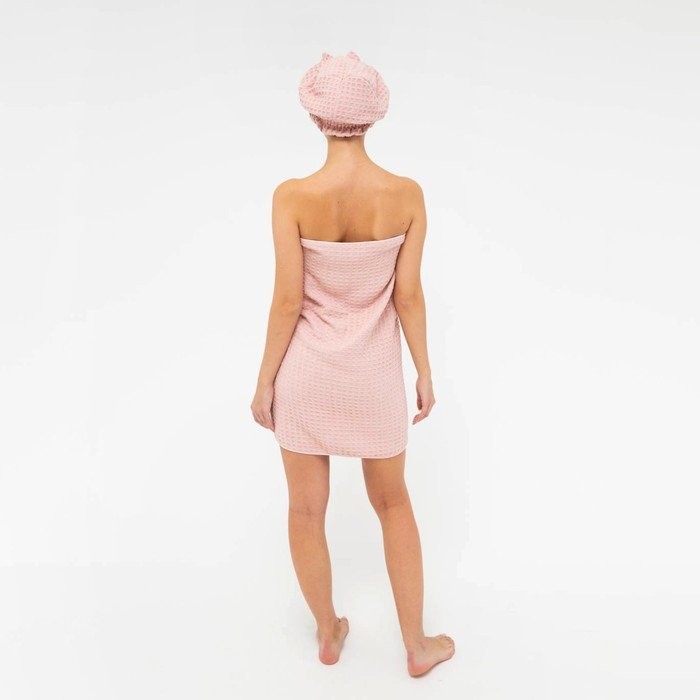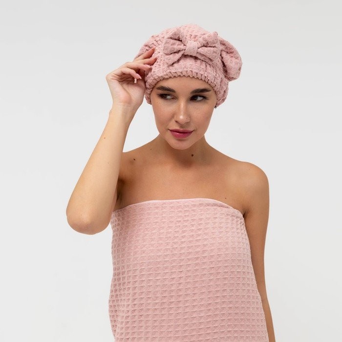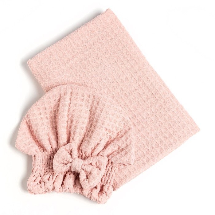 Набор для бани и ванной Этель «Вафля» полотенце 70*140 см+чалма 21*25 см, цв.розовый