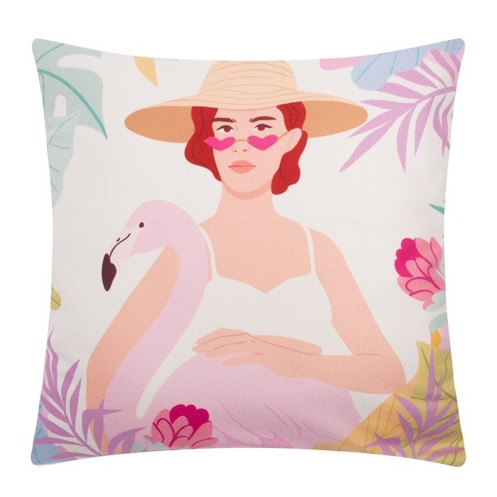 Наволочка Этель «Девушка с фламинго» 40×40 см, 100% п/э, велюр