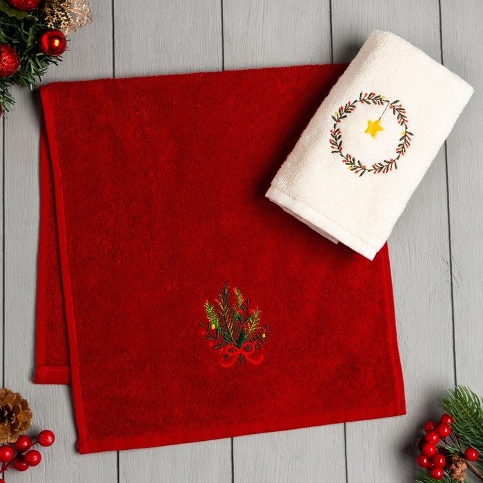 Набор полотенец Этель «Зимний букет» 30×60 см-2шт, 100% хлопок 340 г/м2