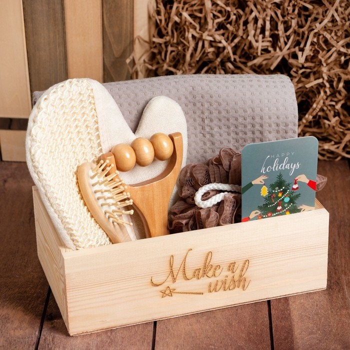 Подарочный набор новогодний Этель Make a wish полотенце 70х140см и аксессуары (4 предм)