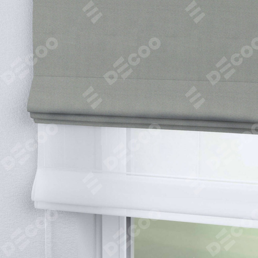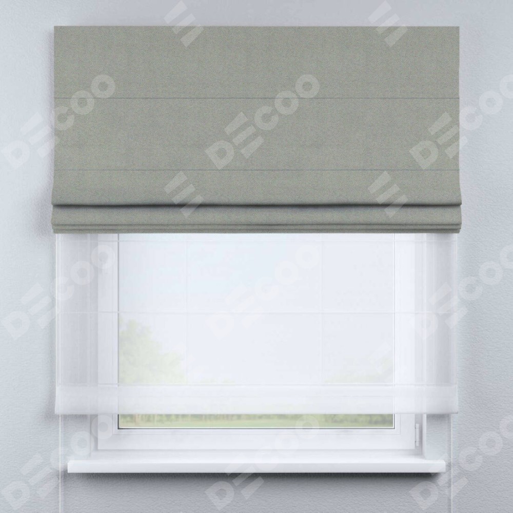 Римская штора день-ночь производителя «Cortin», используется для проёма, пошита из двух полотен, с лицевой стороны блэкаут однотонный серый артикул 88292, вторая ткань тюль (по стандарту комплектуется тюль белого цвета артикул V-01). Имеет универсальный механизм и подходит для монтажа: на потолок, на стену и в нишу.