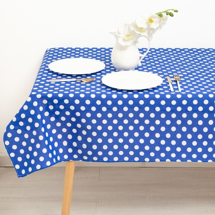 Скатерть Горох синий 150×150 см, рогожка 160 гр/м2