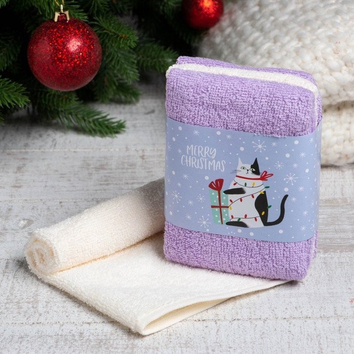 Набор махровых полотенец Этель «Кот» 30×30 см-3шт, 340гр/м2, 100% хлопок
