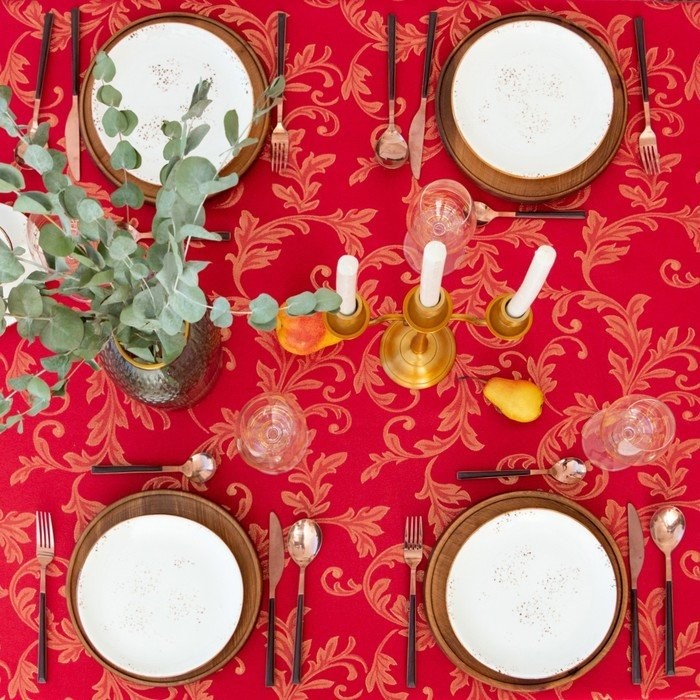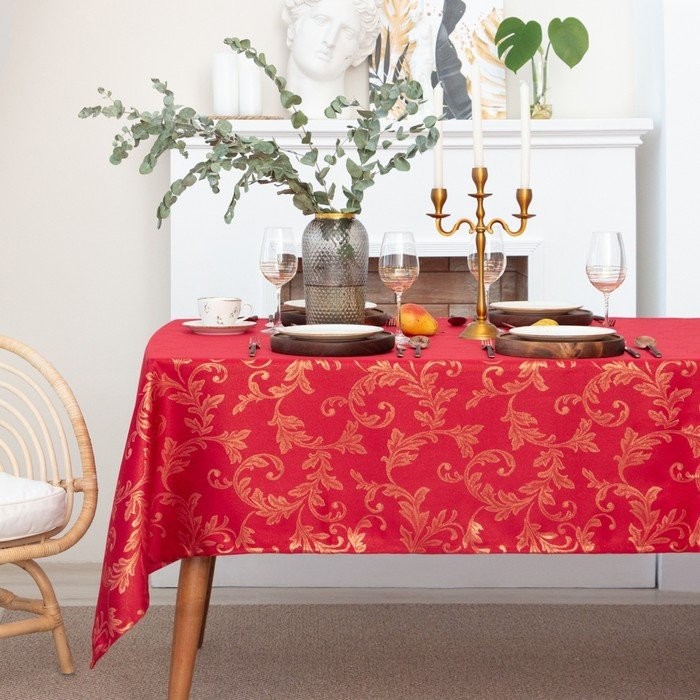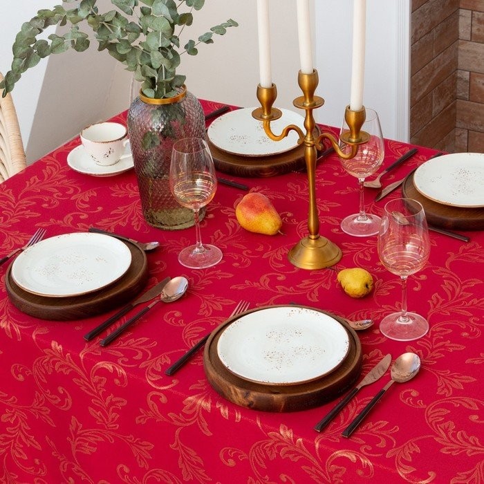 Скатерть Этель «Patterns» цвет красный, 142*110 +/-3 см, 115 ±10 гр,100% п/э