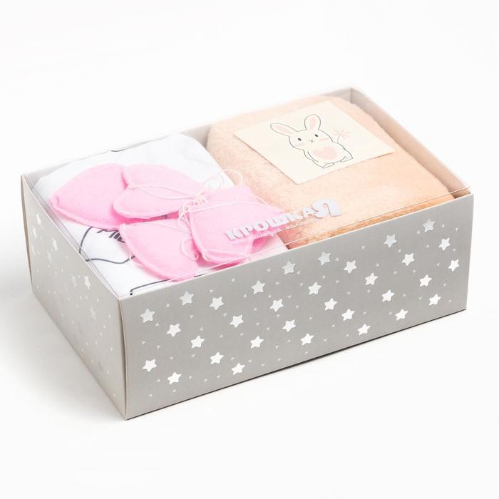 В набор входит плед 90 × 90 см и муслиновая пелёнка 75 × 120 см.