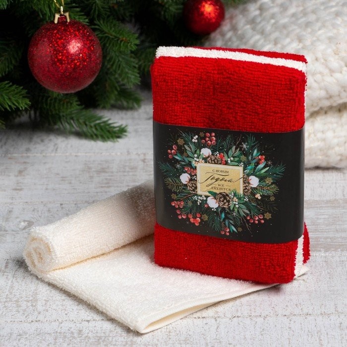 Набор махровых полотенец Этель «Всё сбудется» 30×30 см-3шт, 340гр/м2, 100% хлопок