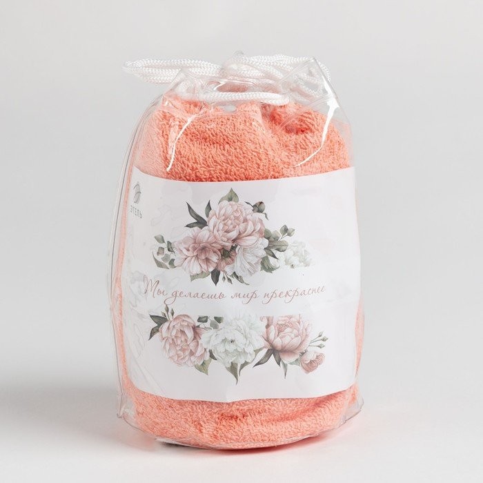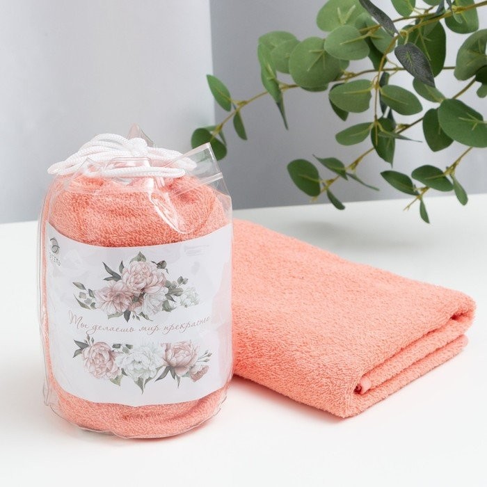 Полотенце подарочное Этель «Ты делаешь мир прекраснее» персиковый, 50х90см, 100%хл,340г/м2