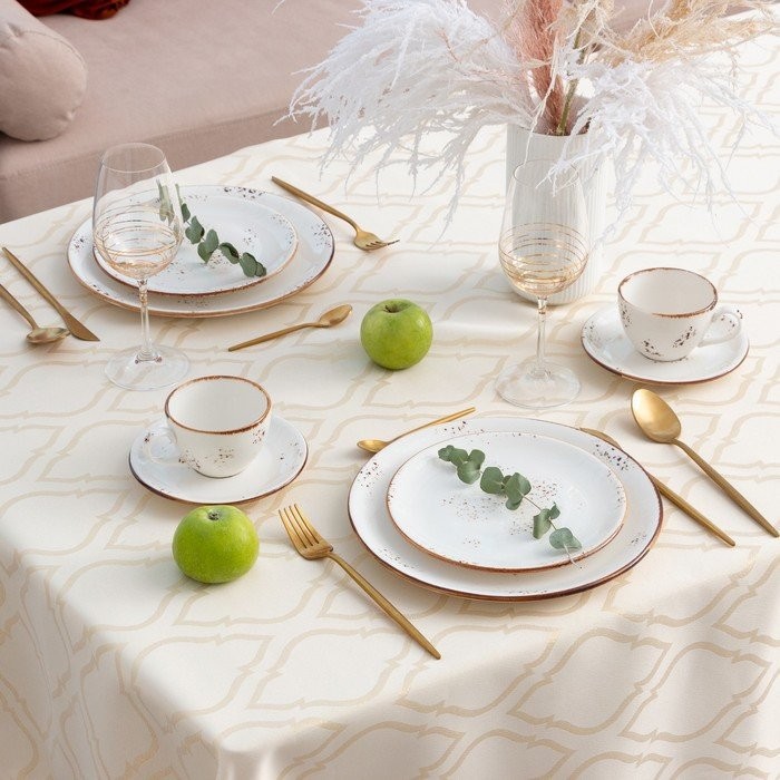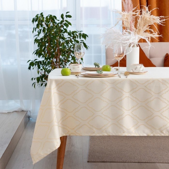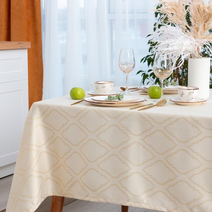Скатерть Этель «Ажур» цв.бежевый, 142*220 +/-3 см, 115 ±10 гр,100%