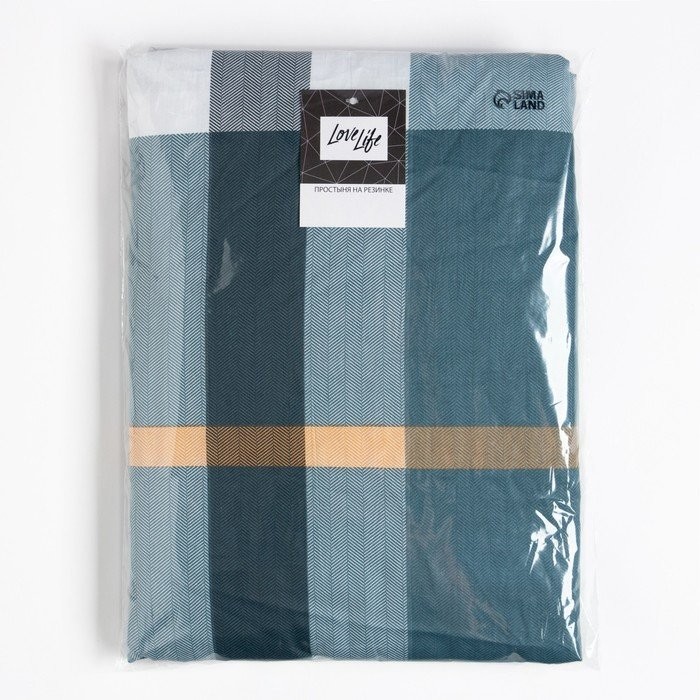 Простыня на резинке LoveLife 140*200*25см, «Клетка», 100% хлопок, сатин, 125г/м²
