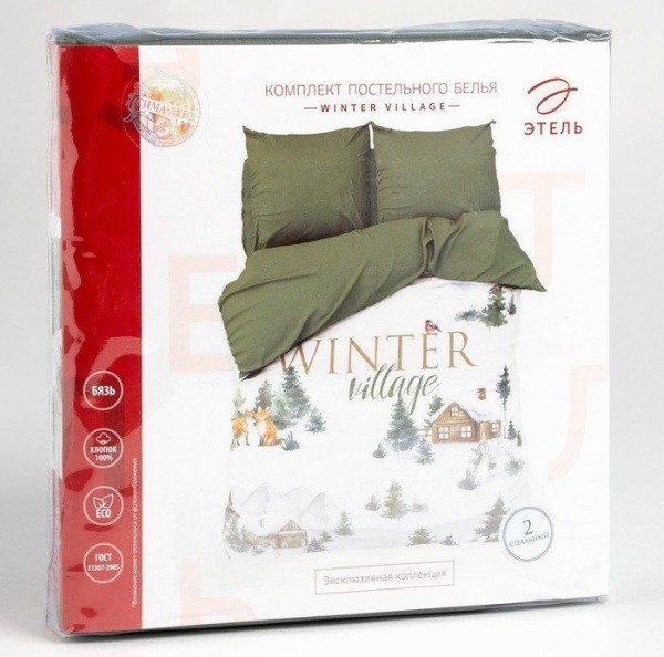Постельное бельё «Этель» 1.5 сп Winter village 143*215 см, 150*214 см, 70*70 см — 2 шт, бязь 125гр/м2