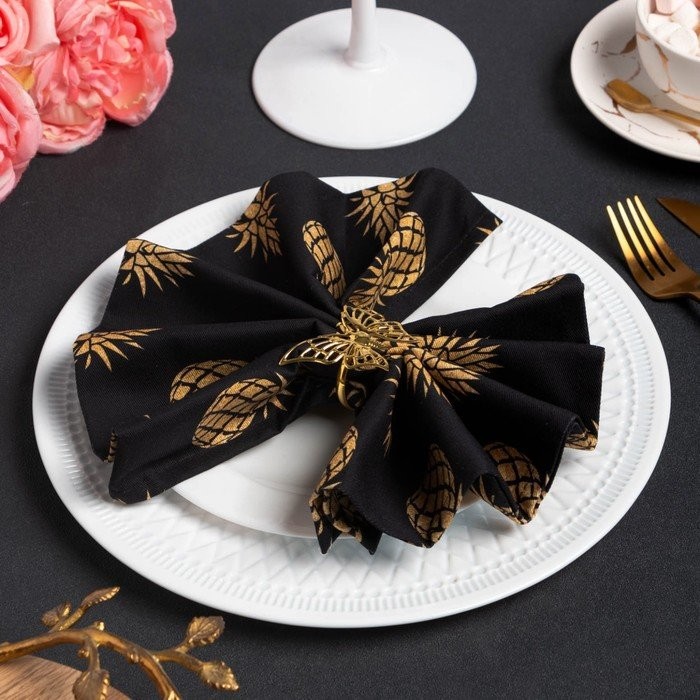 Набор салфеток с декорат. кольцами «Golden pineapple» 46×46 см — 2 шт,100% хл, саржа 190гр/