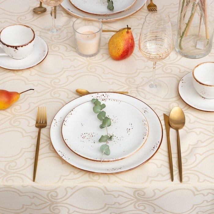 Скатерть Этель «Орнамент» цв.бежевый, 142*110 +/-3 см, 115 ±10 гр,100% п/э