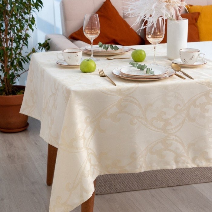 Скатерть Этель «Узор» цв.бежевый, 142*283 +/-3 см, 115 ±10 гр,100% п/э