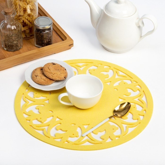 Салфетка декоративная Доляна«Пасха», цвет жёлтый, d 30 см, 100% п/э