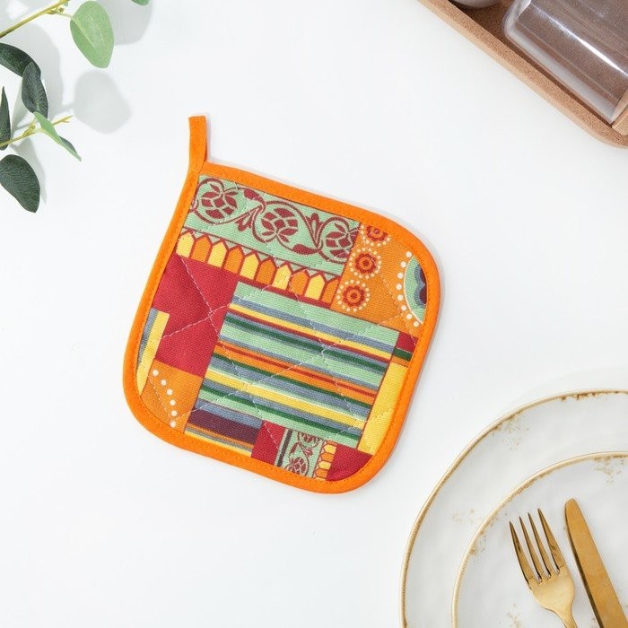 Прихватка Мари Санна Орнамент 18×18 см, желтый, рогожка