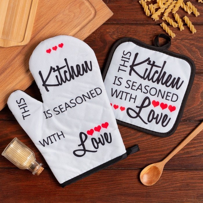 Кухонный набор (2 предмета) Доляна Kitchen, прихватка 17×17 см, варежка 26×16 см, 100% п/э