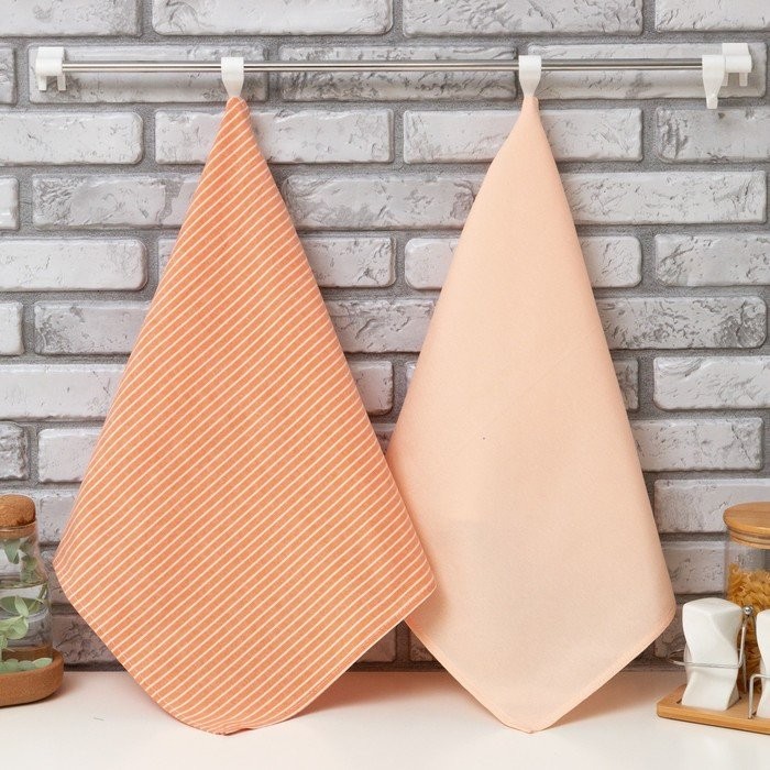 Набор кухонных полотенец Доляна «Полосы», 40х70см- 2шт, розовый, 50%п/э, 50%хл