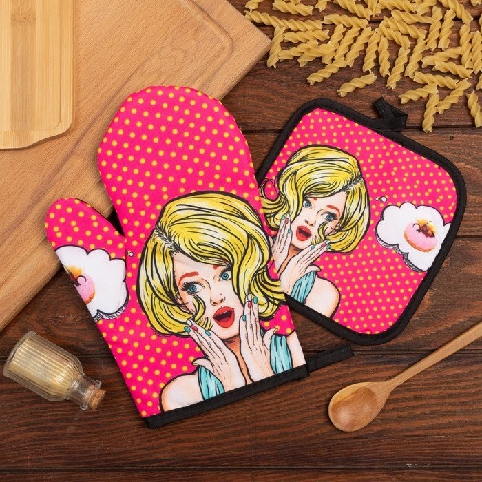 Кухонный набор (2 предмета) Этель LoveLife «Мечтательница», прихватка 17×17 см, варежка 26×16 см, 100% п/э