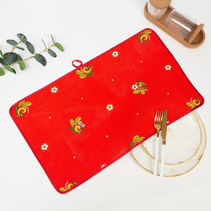Полотенце 35*60 см, Хохлома-102, красный, 160 гр/м хл 50%, лен 50%