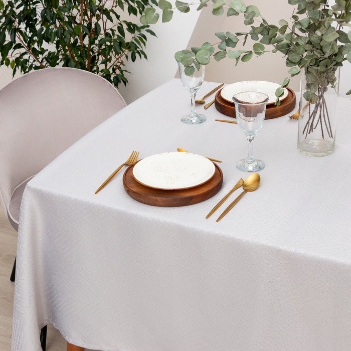 Скатерть Этель «Зигзаг» цв.серебро, 142*180 +/-3 см, 115 ±10 гр,100% п/э