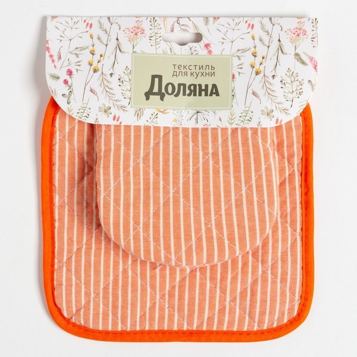 Кухонныйнабор Доляна «Полосы», прихватка20х20см, варежка12х15см, персик, 50%п/э, 50%хл