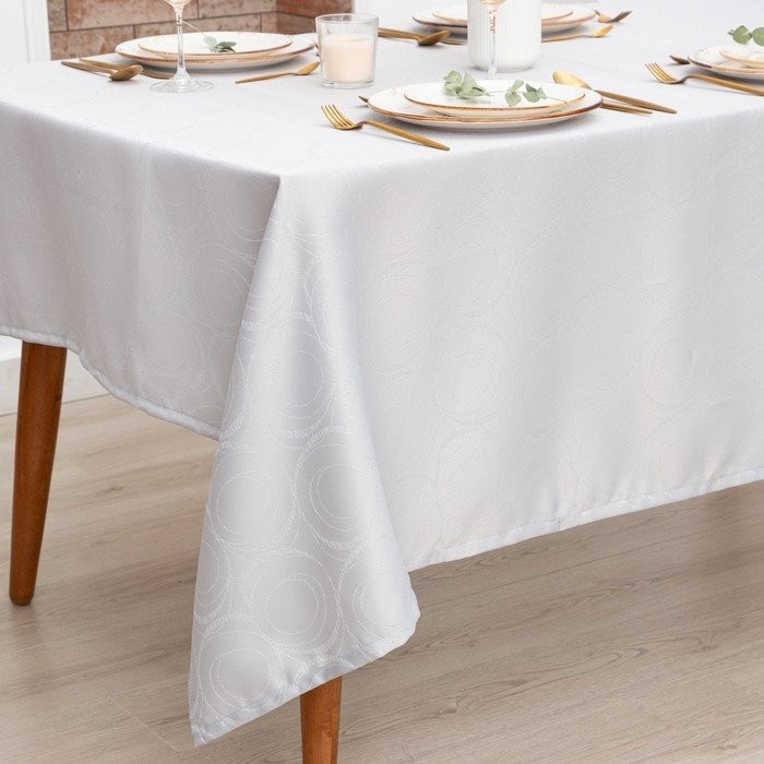 Скатерть Этель «Круги» цв.серебро, 142*110 +/-3 см, 115 ±10 гр,100% п/э