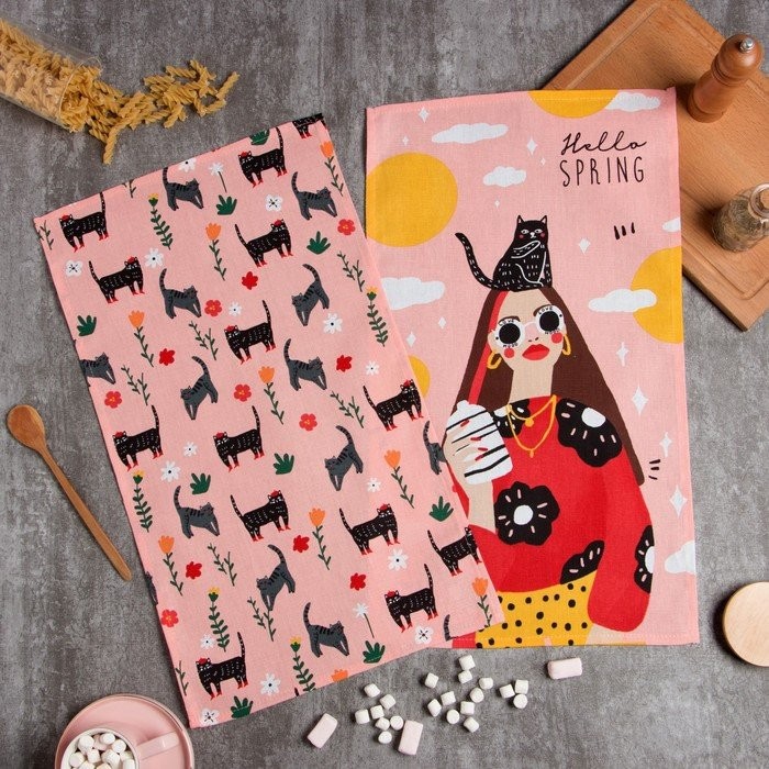 Набор кухонных полотенец Доляна Hello spring 35х60см-2шт, 100% хл