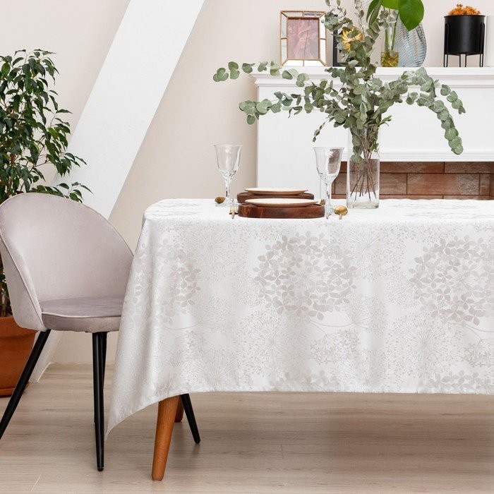 Скатерть Этель «Flowers» цв.серебро, 142*180 +/-3 см, 115 ±10 гр,100% п/э